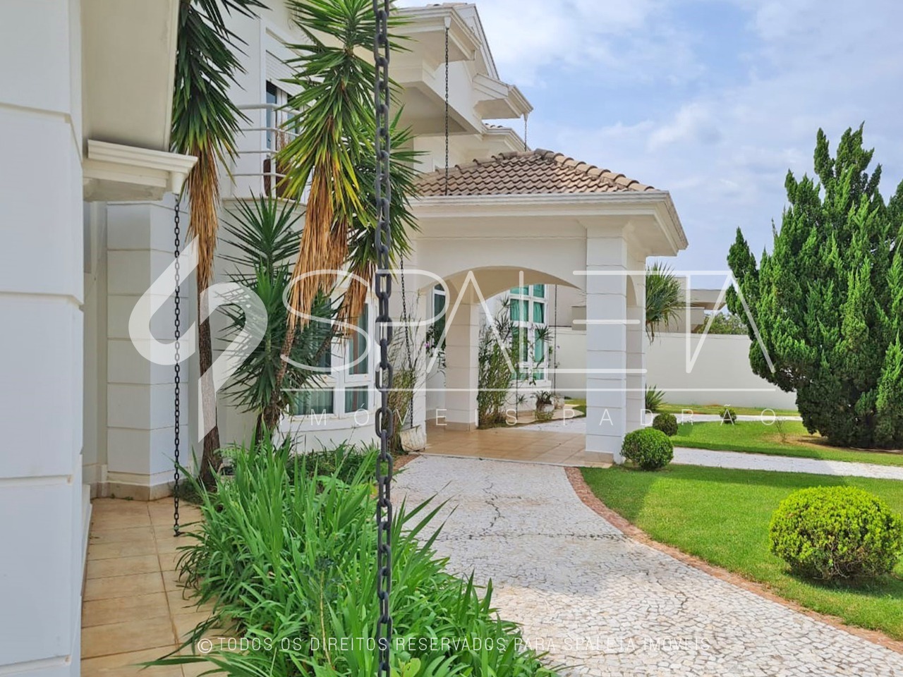 A esplêndida casa com estilo clássico projetada pelo renomado arquiteto Antônio Tomino está disponível para venda no condomínio Terras de Santa Teresa, localizado entre Itupeva e Vinhedo.